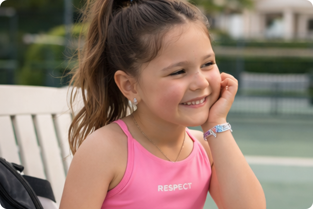 Tennis-inspired activewear for girls ages 4–8, designed to build confidence, courage,